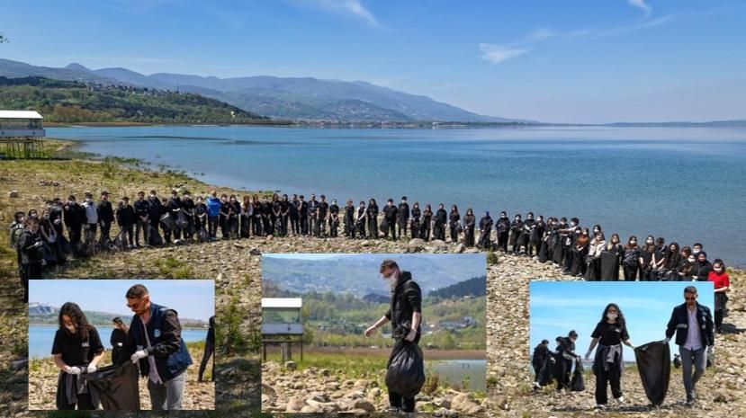 Sapanca Gölü çevresindeki atıkların temizlenmesi için gönüllü olan Sapanca Anadolu Lisesi öğrencileri 85 torba atık topladı.